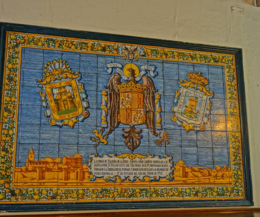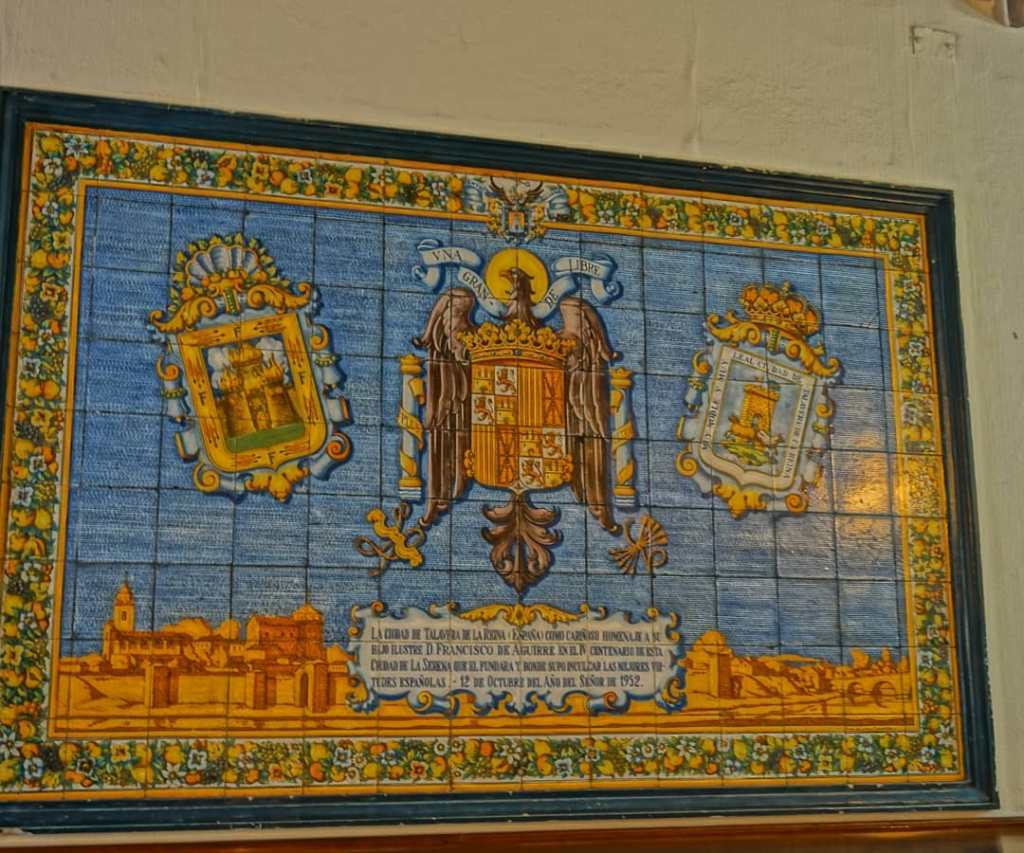 Obra entregada por la ciudad de Talavera de la Reina, España, como homenaje a su hijo Ilustre Francisco de Aguirre en el cuarto centenario de la ciudad de La Serena, el 12 de octubre de 1952.