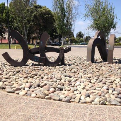 Destacan dos esculturas de acero de gran formato instaladas en la plaza para uso público, creación de la artista Griselda López.