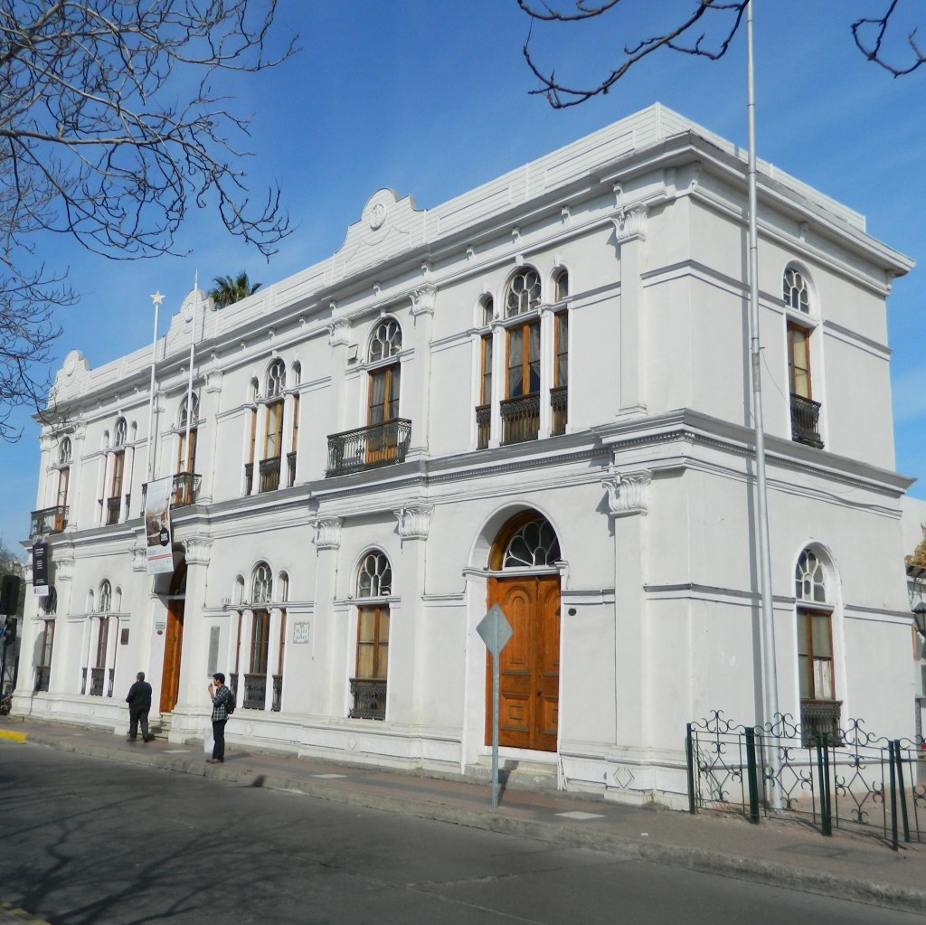 Se encuentra emplazada en el solar que perteneció al refundador de la ciudad, Francisco de Aguirre, en el que antes fueron localizados el hospital y la cárcel de la ciudad; y es la única construcción civil del siglo XIX existente en torno a la Plaza.