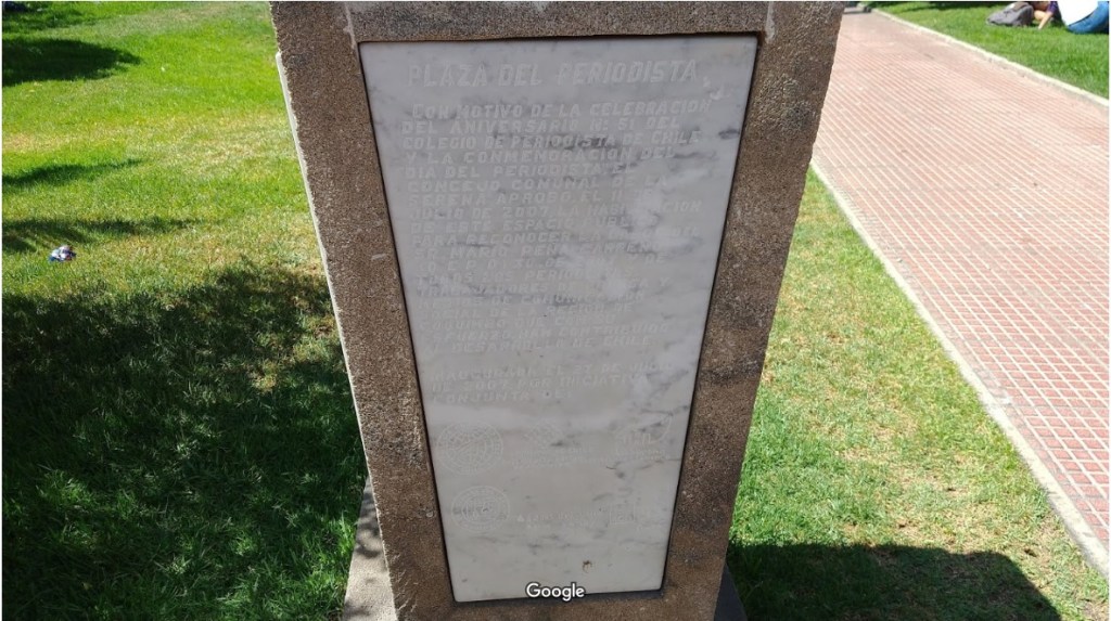 Con motivo de la celebración del aniversario N°51 del Colegio de Periodistas de Chile y la conmemoración del día del periodista, el Consejo Comunal de La Serena aprobó el 11 de julio de 2007 la habilitación de este espacio público para reconocer la labor del sr. Mario Peña Carreño (Q.E.P.D.) 30.05.2007 y de todos los periodistas, trabajadores de prensa y medios de comunicación social de la región de Coquimbo que con su esfuerzo han contribuido al desarrollo de Chile.