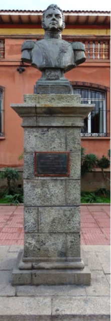 El monumento a Bernardo O’Higgins consiste en un busto en bronce sobre una base de granito y placa de bronce.