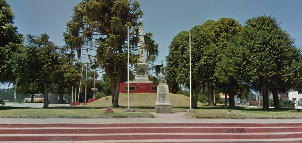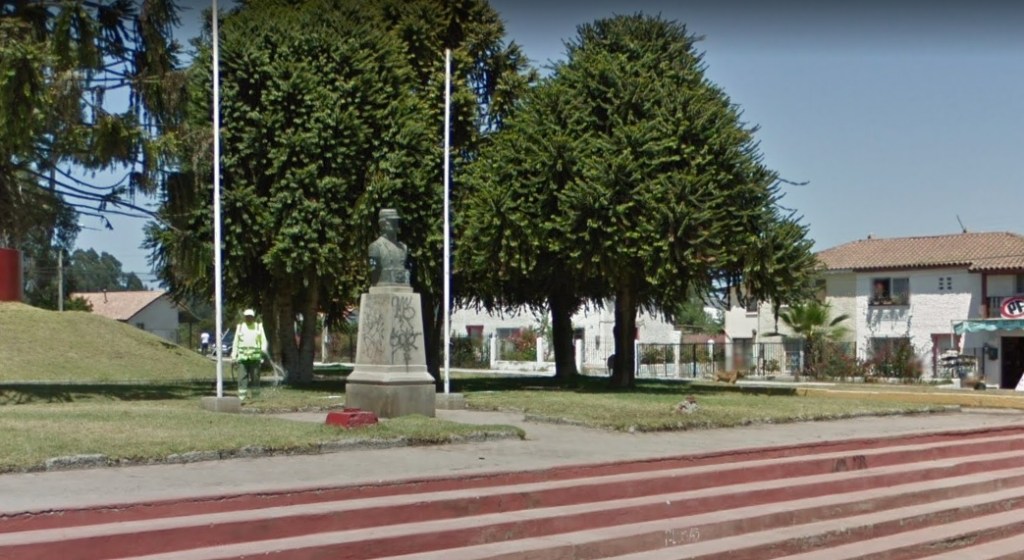 El monumento a Ignacio Carrera Pinto consiste en un busto de bronce con base de hormigón. Conmemora al capitán del 6° de línea y héroe de la batalla de La Concepción durante la Guerra del Pacífico.