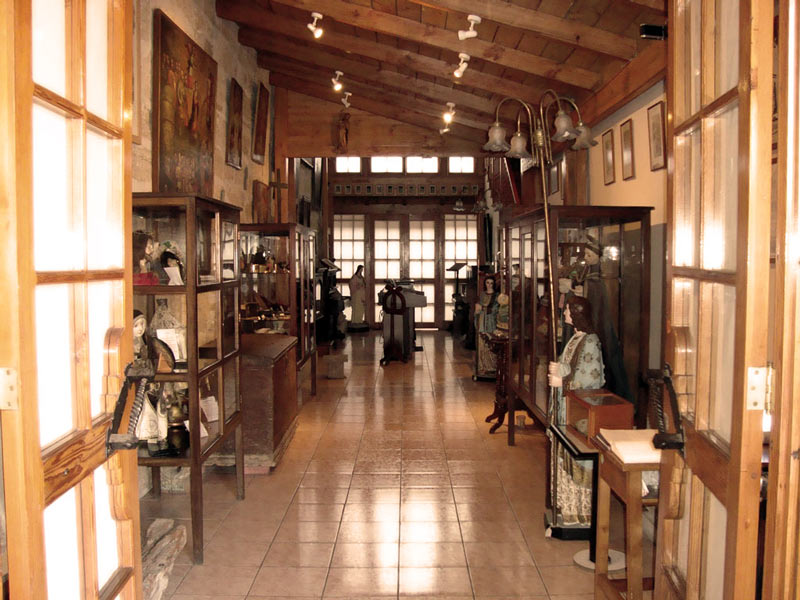 Al ingreso es posible ver restos del templo de San Francisco que datan de su fundación en 1627. En el primer piso se encuentran imágenes de culto talladas en madera, algunos objetos de uso religioso y objetos asociados a Gabriela Mistral, quien era muy cercana a la congregación franciscana. Las piezas más antiguas son la imagen de Nuestra Señora del Carmen, del siglo XVI y el cuadro cusqueño del mismo período que representa el Cielo, el Infierno y el Purgatorio.