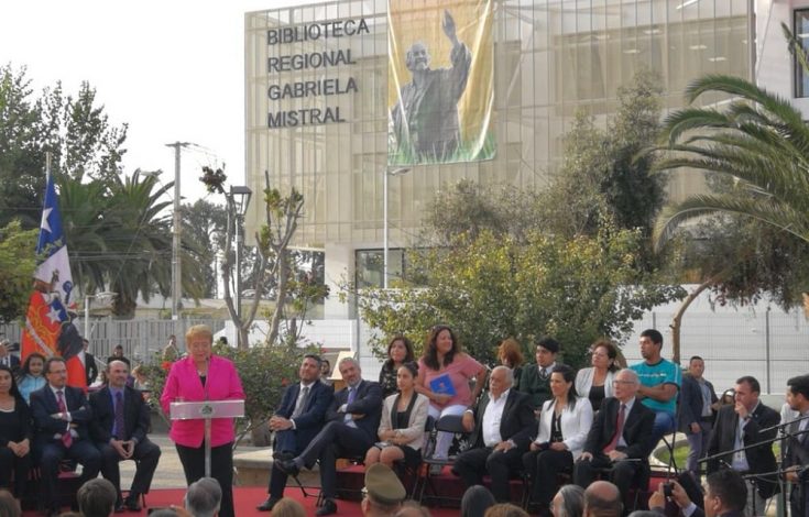 El 21 de mayo de 2014, el gobierno de Michelle Bachelet prometió construir bibliotecas regionales en aquellas zonas que no dispusieran de alguna. Así, financiada por la entonces Dirección de Bibliotecas, Archivos y Museos (Dibam), actual Servicio Nacional del Patrimonio Cultural, la construcción de la Biblioteca Regional Gabriela Mistral se inició el 28 de mayo de 2016 y contó con el apoyo técnico del Ministerio de Obras Públicas (MOP).