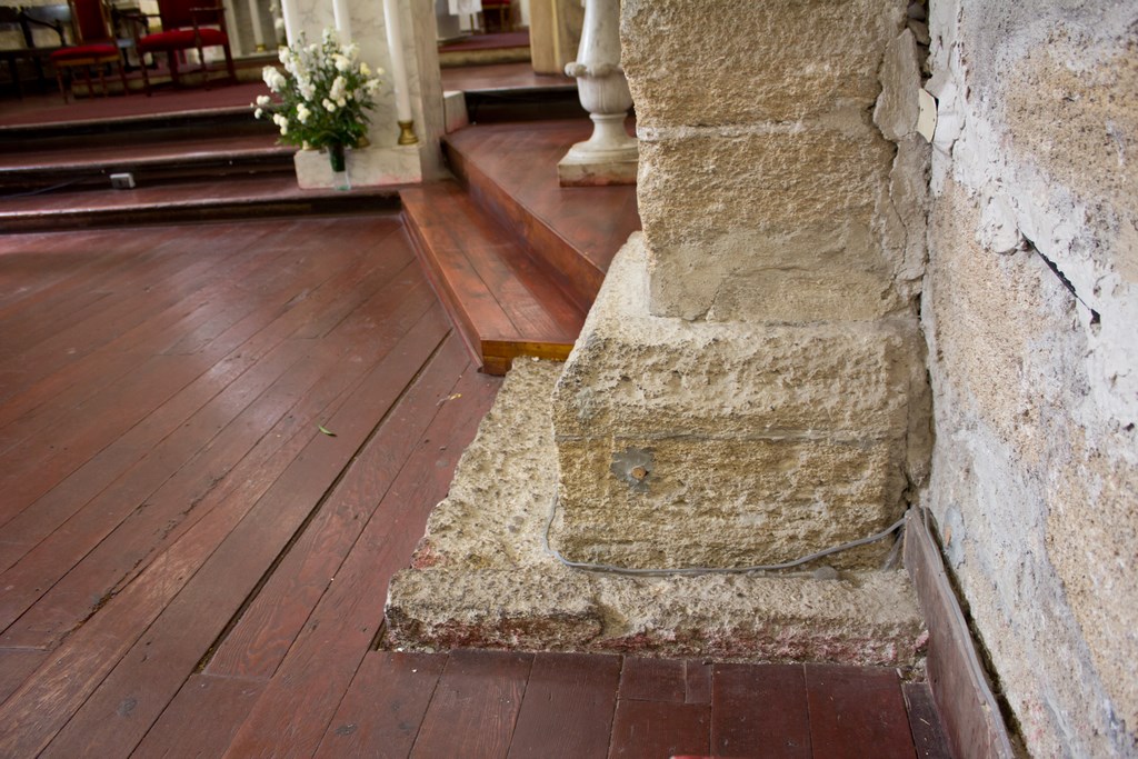El piso de toda la iglesia es de madera tipo pino oregón original. El año 2001 se realizaron trabajos en el pasillo principal de la iglesia, antiguamente el sector cercano al presbiterio estaba en otro nivel, medio peldaño mas alto que el resto de la nave. Se retiró el entablado de madera de pino oregón del suelo, descubriendo que se encontraban lápidas enterradas de siglos pasados, una al lado de la otra y en hileras por toda el área. Luego, se instalaron nuevamente las tablas recuperadas al mismo nivel del suelo original, dejando uniforme el nivel de piso evitando pormenores producto de esto.