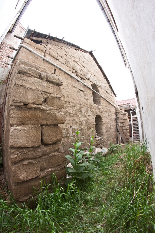 El templo originalmente poseía contrafuertes de piedra en su costado sur hacia la actual calle Arturo Prat, que luego fueron tapiados visualmente por construcciones de adobe, edificadas a comienzos del siglo XIX. Cuando se demolieron estas edificaciones en la década de 1980, aparecieron nuevamente, e incluso se propuso la idea de dejarlos al descubierto, pero los dueños del terreno optaron por construir un edificio de dos pisos respetando la línea constructiva de la zona típica, que está inspirada en el estilo arquitectónico neocolonial. Actualmente solo se aprecia tres vestigios de este elemento original de la iglesia, dos ubicados en la parte posterior del muro testero y el otro mejor mantenido al costado sur de la fachada.