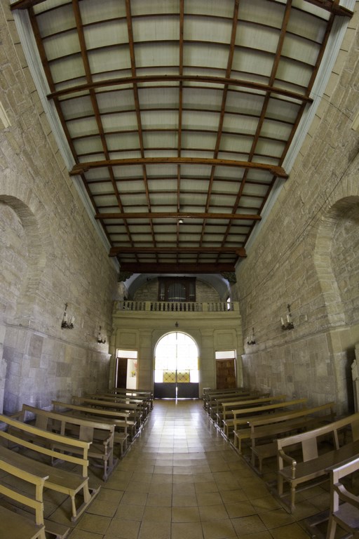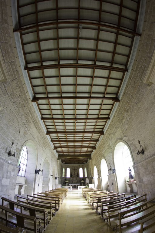 Para conectar el hall con el interior de la nave se construyó una mampara de fierro, vidriada, bajo un arco de medio punto, y dos puertas laterales Igualmente se remplazó el cielo de bóveda del templo por uno raso y sobre el se instaló un artesonado falso. En este se distribuyeron seis de los canes con tallas barrocas, provenientes del coro. Además se retiró el estuco interior, dejando la piedra a la vista y se transformaron las ventanas, sustituyendo las de madera original del templo por otras semicirculares de fierro con vidrieras. El piso igualmente fue retirado, colocando en su lugar uno de baldosas. En esta transformación del templo se sustituyeron los altares de madera por otros labrados en piedra caliza, entre ellos el altar mayor, remodelado el siglo pasado y los púlpitos, que se reemplazaron por ambones de piedra, igualmente el balaustre del presbiterio y los confesionarios que se realizaron en el mismo material.