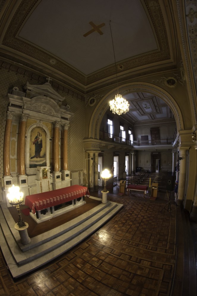 La nave principal, proporcionada, se destaca por la simplicidad de sus líneas y las grandes ventanas altas de vano de medio punto que la iluminan. A la izquierda del arco toral, se encuentra adosado un púlpito de madera barnizada que resalta por la riqueza de su talla.