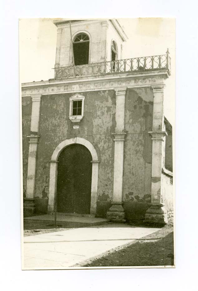 Su fachada está compuesta de un acceso con arco de piedra enmarcado por cuatro pilastras, A ambos lados de este acceso se encuentran cuatro pilastras de piedra que en conjunto armonizan como respuesta al neoclásico del siglo XIX, y remata en una crestería de madera calada profusamente decorada. Originalmente está estructurada en muros de adobe con más de 1m de ancho de espesor, sustentados sobre bases de cimientos de piedra y techumbre consistente en tijerales de madera de roble y teja, con su gran torre central, donde se ubica el campanario.