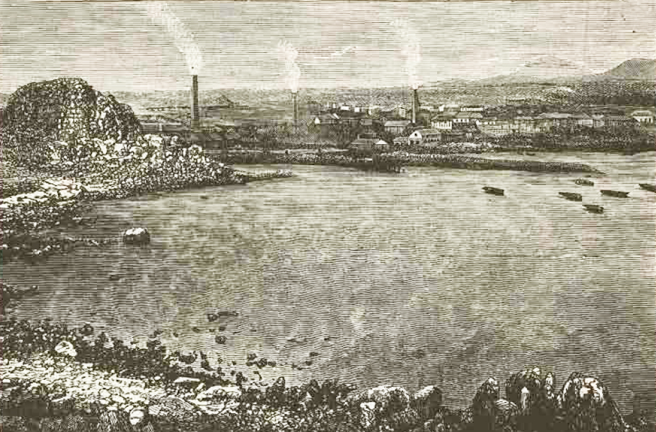 El pueblo fue construido por la Sociedad Comercial Urmeneta & Errazuriz, llegando a ser la mayor refinería de cobre del mundo, con 35 hornos de reverbero y tres chimeneas de ladrillo con 40 metros de altura. También se construyó un laboratorio químico, una iglesia, un puerto propio y poblaciones para obreros y técnicos, entre los cuales había mayoritariamente europeos y norteamericanos, los que influyeron y determinaron la tipología arquitectónica del lugar con construcciones de un piso de altura, de fachada continua con acceso central y ventanas a los costados.