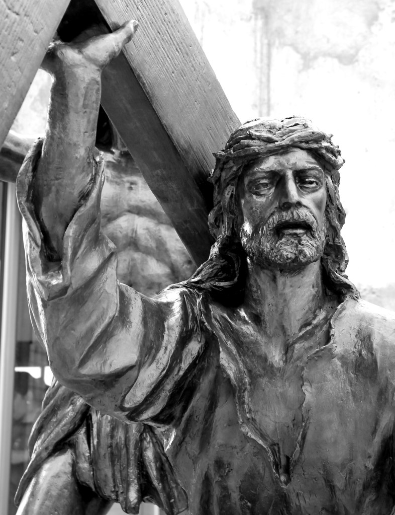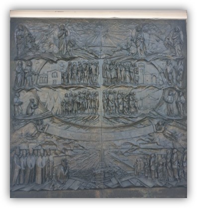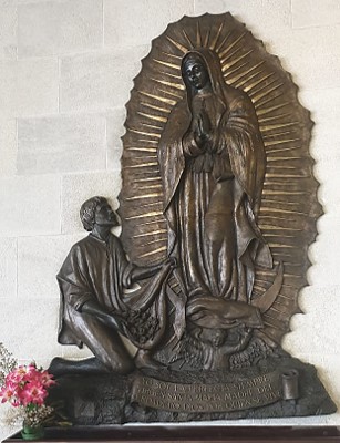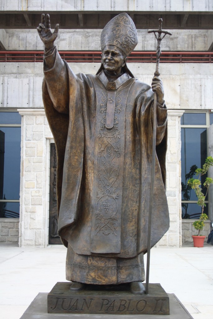 Esculturas en bronce: Mauricio Eugenio B. (Juan Pablo II), Elías Rovielo (Piedad) y Página Oficial (Virgen y San Pedro).