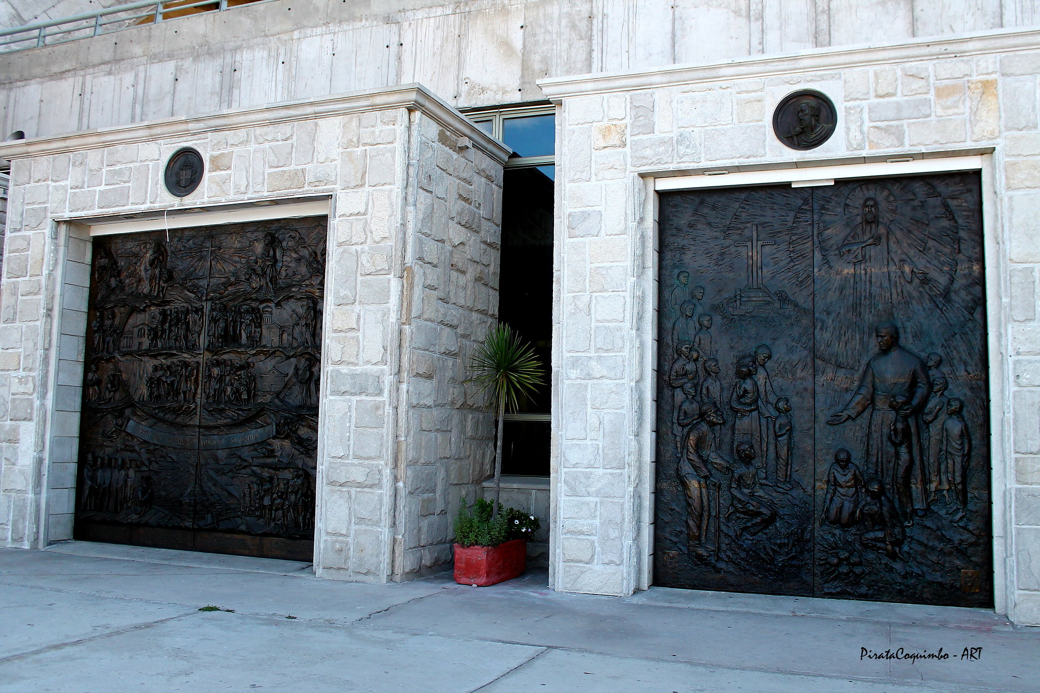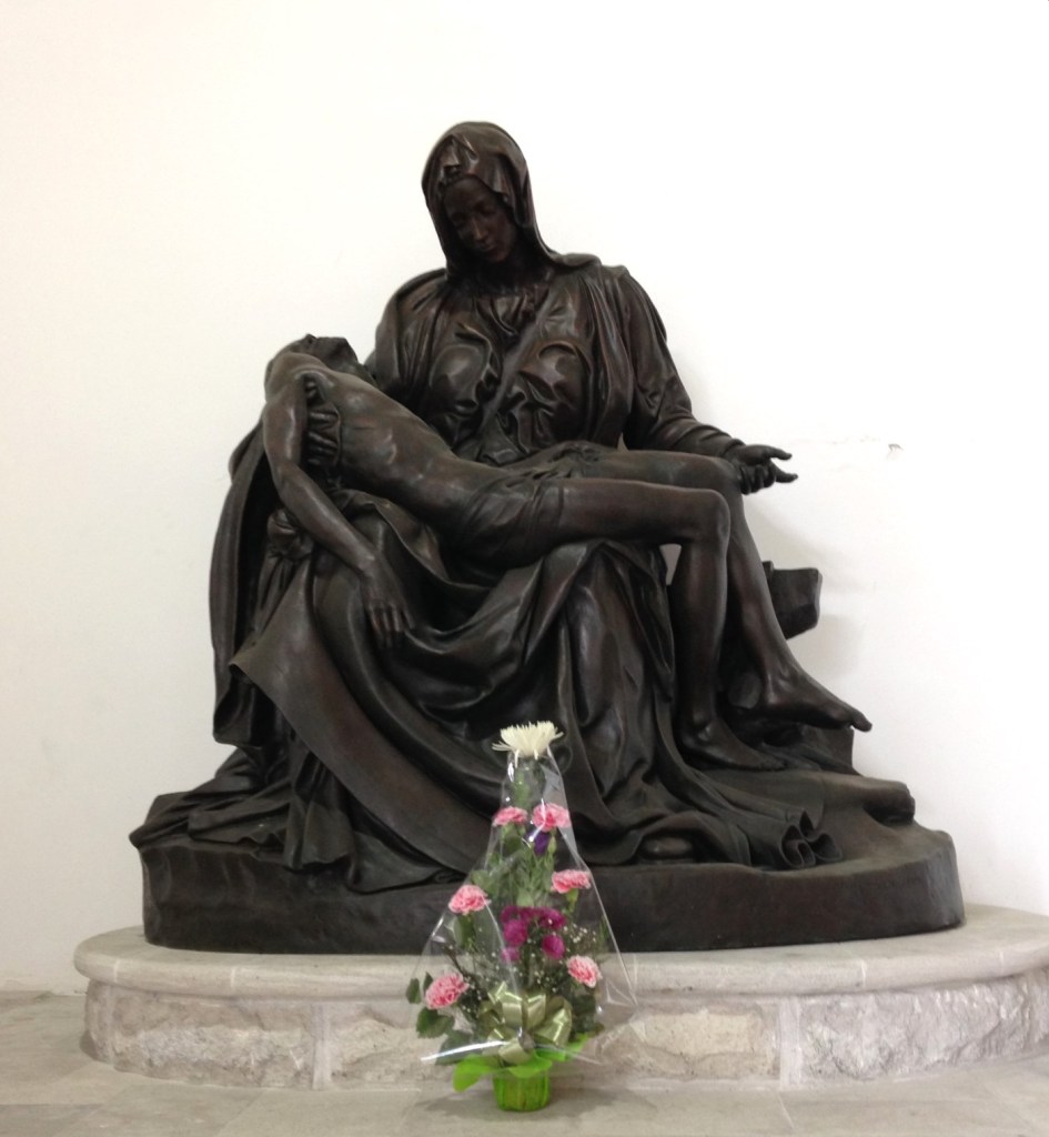 Además, se encuentra una réplica de la Piedad de Miguel Ángel, cuya iconografía representa a la Virgen, de rostro joven, con su hijo muerto en brazos. Confeccionada por la fundición romana Domus Dei, fue enviada desde Italia a Chile, llegando a Coquimbo el 9 de agosto del año 2002. Pesa 700 kilos y su materialidad es de bronce. También se encuentra una escultura de San Pedro enviada durante ese mismo año. Posee una altura de 2,2 m. y pesa 230 kilos en bronce. Junto a estas esculturas, se encuentra una imagen en bronce que representa a la Virgen de Guadalupe como Reina de América.