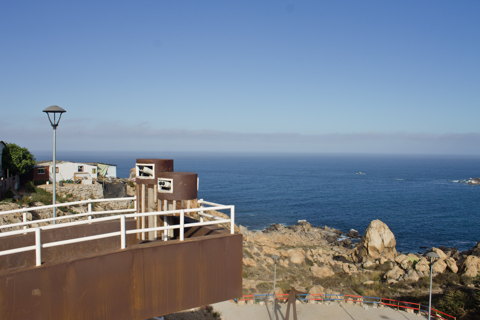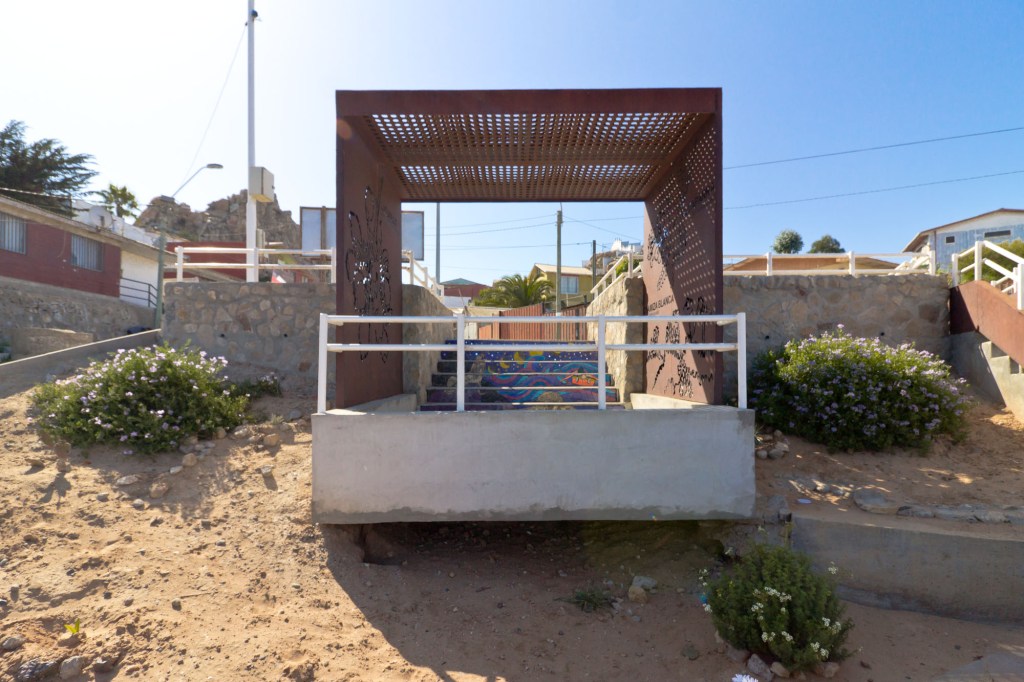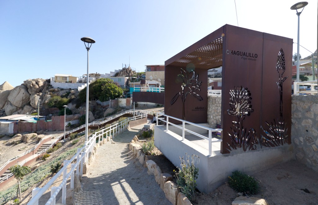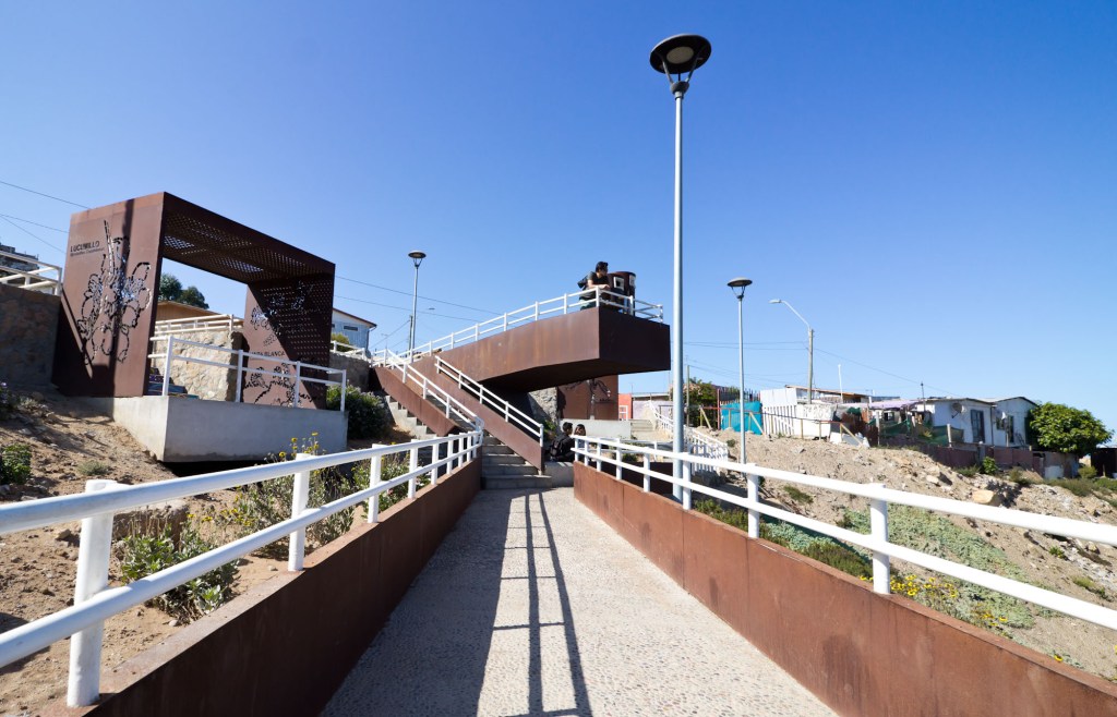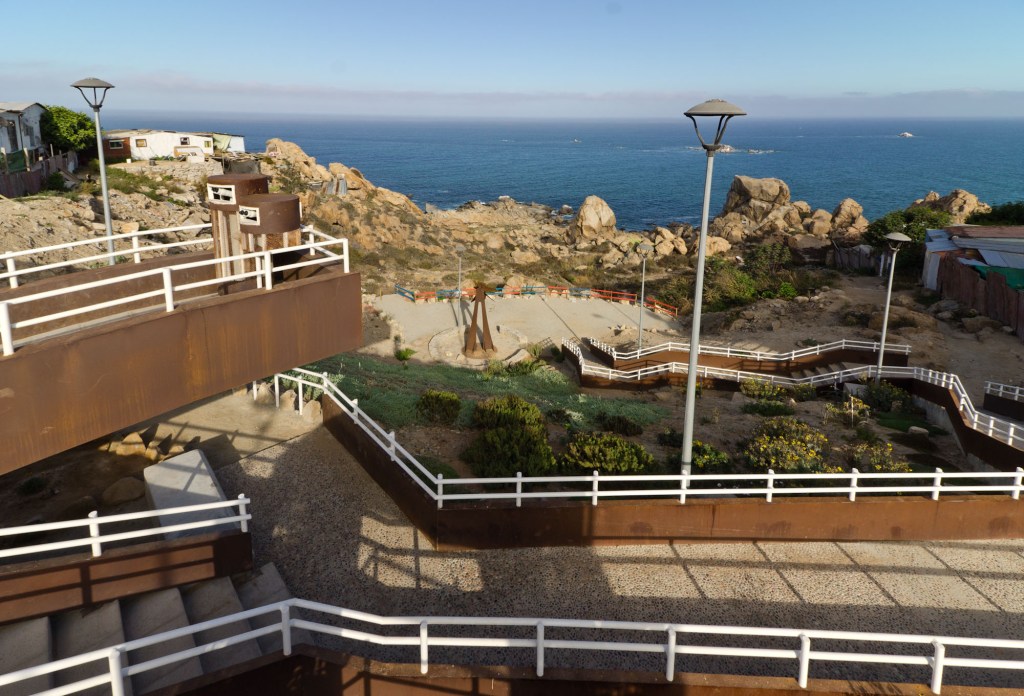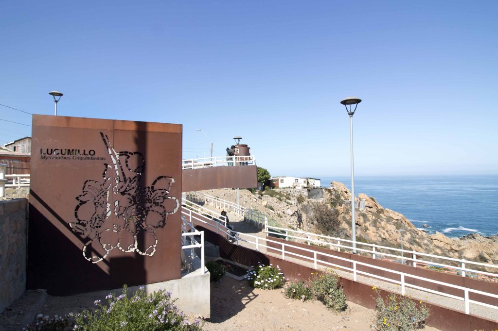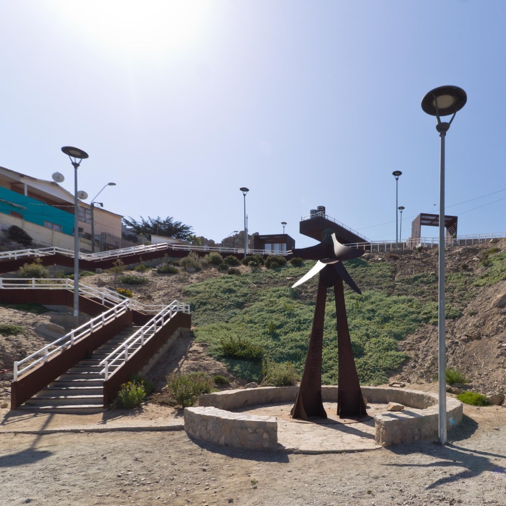 Terreno de aproximadamente 781,20m2. El espacio está constituido por 3 módulos informativos y de contemplación, luminarias, basureros, escaleras, rampa y senderos que recorren el área rodeada de vegetación nativa con vista al mar.