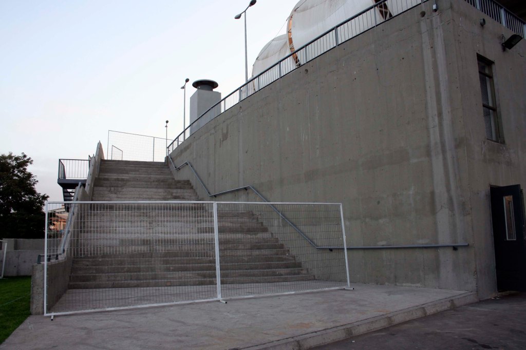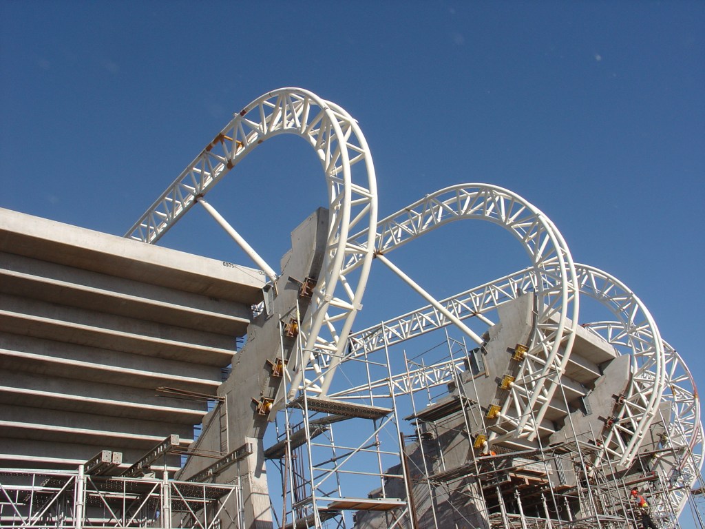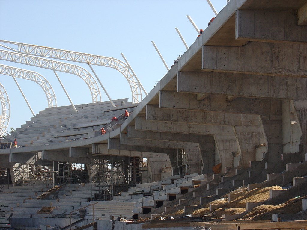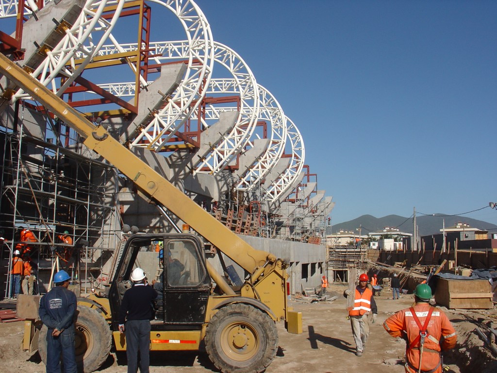 Las obras de construcción en el sector sur-oriente concentran programas anexos: camarines, bodegas, oficinas, acceso de buses y automóviles, locales técnicos y otros; un adecuado uso de las características topográficas y una concentración funcional de locales afines.