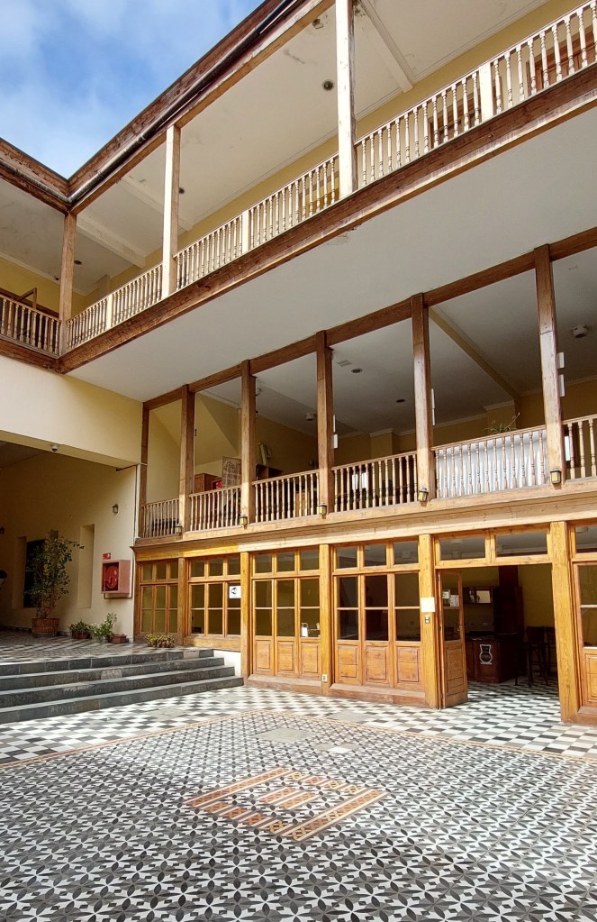 La casona original fue construida en adobe y fina tabiquería de pino Oregón. Su estilo es propio de la arquitectura portuaria del siglo XIX, en este caso, con influencia federativa norteamericana bostoniana.