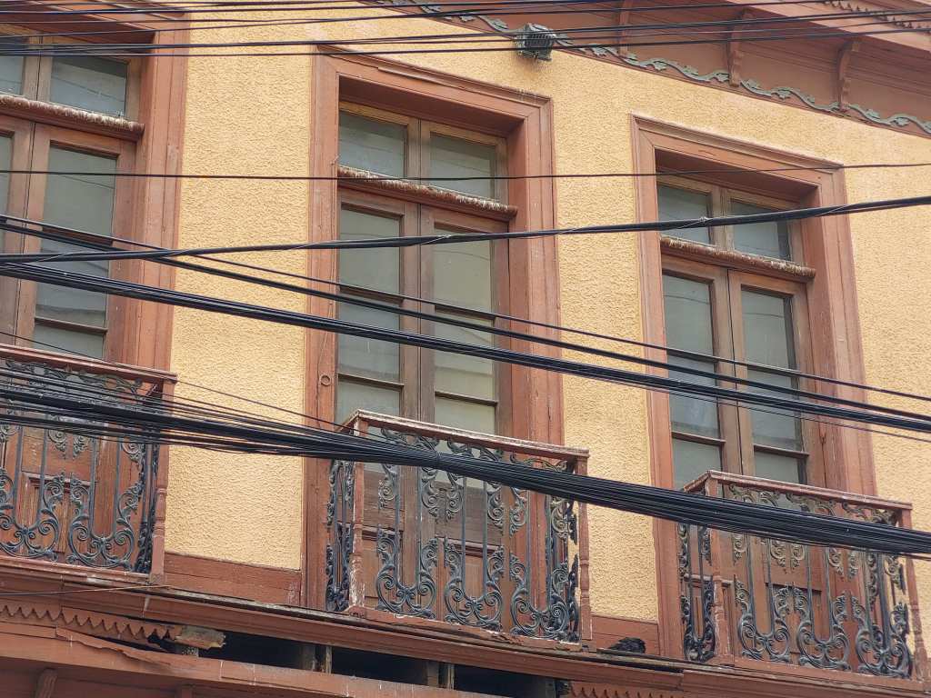 Corresponde a un volumen que se desarrolla en tres pisos, de fachada simétrica. Su primer piso en contacto con la vía pública es el más sencillo de los tres, con tres accesos, dos perimetrales y uno central más jerárquico y ventanas alargadas donde predomina el lleno sobre el vacío. En su segundo nivel aparecen los balcones desarrollados en herraje de acero. En el tercer nivel, los vanos adoptan la característica del bow window.