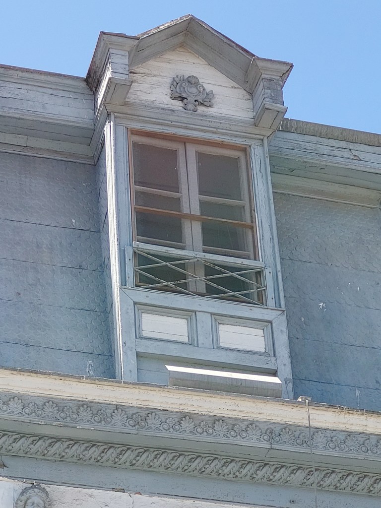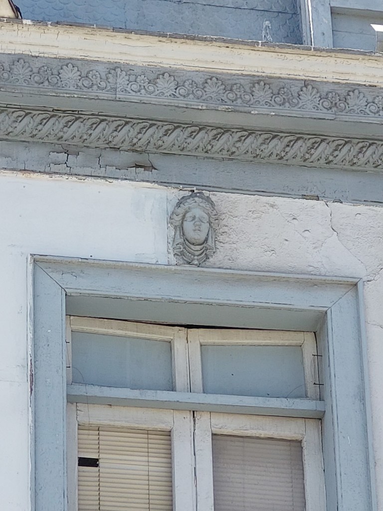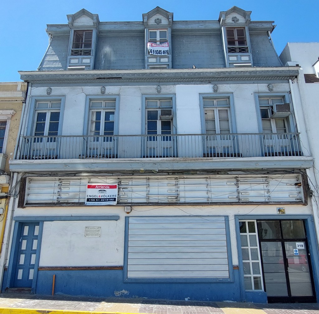 Entre sus detalles ornamentales se aprecian cinco mascaras clásicas de la diosa Atenea. La edificación presenta un primer piso solido de adobe además de un segundo y tercer piso mansarda en tabiquería de madera. Destaca por su altura y por lo elaborado de sus carpinterías. Siendo característico de un estilo francés especialmente por el trabajo de los vanos en la mansarda y el ritmo de las ventanas en el segundo nivel. El primer nivel se encuentra altamente intervenido por los usos comerciales.
