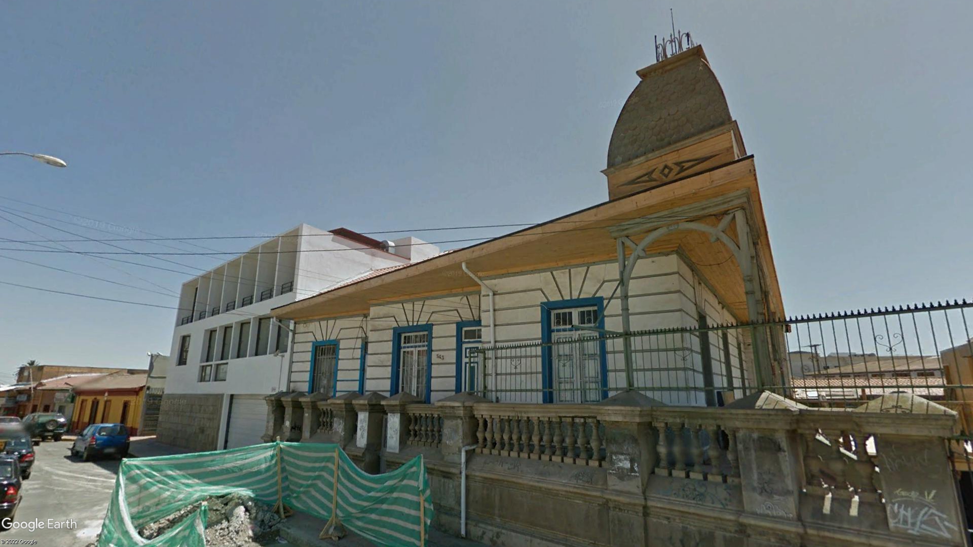 Vivienda construida en adobe y de un piso. Destaca su cúpula decorativa y descentrada. El inmueble en forma de L, su fachada principal es escalonada pero presenta una cubierta única que unifica los cuerpos. En la esquina tiene un torreón que descansa en una ligera estructura de madera. La proporción de los vanos es neoclásica o ecléctica. El estuco tiene relieve como de bloques en muros y dinteles. El edificio está un poco retranqueado y el predio se cierra con un robusto muro de hormigón y balaustas.