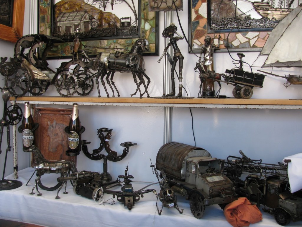 Aros, figuras en madera, lámparas, artesanías en piedra, trabajos en cuero, pinturas, fierro forjado y hasta hierbas medicinales son parte de los productos que se pueden encontrar, artículos para todos los gustos y edades.